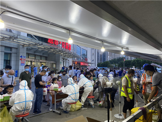 該院自20日啟動應急響應后全院取消休假,醫(yī)務處、護理部、設備科、后勤處等部門積極響應、分工合作、快速落實,第一時間籌備所需的防疫物資,為核酸采集工作提供了堅強的保障。為了高效完成采集任務,醫(yī)院采取循環(huán)調(diào)度的模式,700多人次輪番上崗,有些正處于哺乳期、產(chǎn)假的人員,在外學習、規(guī)培的人員等等也紛紛克服困難,參加到抗疫一線。炎炎夏日,驕陽似火,為了縮短群眾排隊時間,21日當天該醫(yī)院本部從一個采集點兩個窗口增加至四個點位幾十組,至22日凌晨一點多共采集10600人次。