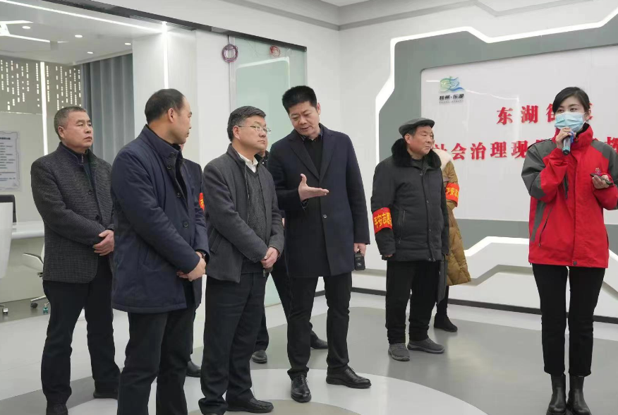 豐縣考察團一行首先來到東湖街道社會治理現(xiàn)代化指揮中心,東湖街道分管政法和平安志愿者工作的領(lǐng)導向考察團一行介紹了東湖平安志愿者分會工作開展情況。近年來,東湖街道根據(jù)邳州市委平安建設(shè)領(lǐng)導小組的要求,率先成立了平安志愿者分會,將民警、網(wǎng)格員、平安志愿者的資源融為一體,有序開展平安志愿工作。廣大平安志愿者積極參與疫情防控、“99公益”、義務(wù)執(zhí)勤、治安巡邏、糾紛調(diào)解、扶貧濟困等公益活動,同時積極參與到市里的“大走訪、大排查、大化解、大提升”專項治理活動,自覺投入反詐騙、反間諜安全防范等宣傳,轄區(qū)民警、網(wǎng)格員、平安志愿者全部下沉一線織密織牢網(wǎng)格,街道平安志愿工作密切了黨群關(guān)系,化解了社會矛盾,改善了社會治安環(huán)境,降低了治安風險隱患。
