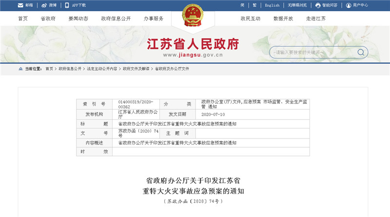江蘇省重特大火災(zāi)事故應(yīng)急預(yù)案出臺!