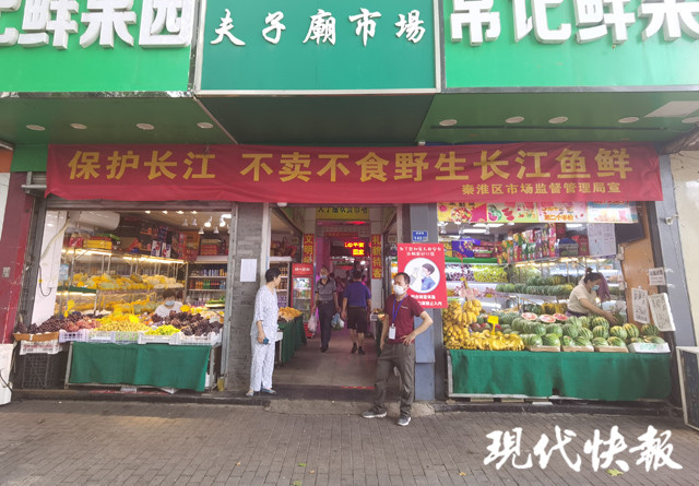 7月22日,現代快報記者走訪了南京多家餐飲、農貿市場及水產商鋪發(fā)現,江鮮已無跡可尋。一些餐飲店、農貿市場和水產商鋪的門頭,還貼有“保護長江,不賣不食野生長江魚鮮”“禁止江鮮交易,保護美好家園”“十年禁漁,方才有魚”等宣傳標語,告知消費者禁售情況。
