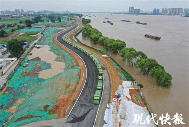 “巧合”的是,位于長江北岸一段5.6公里的堤防,今年6月剛剛?cè)€貫通就“上崗”接受洪水考驗,這就是江北新區(qū)長江岸線濕地保護(hù)與環(huán)境提升一期工程。據(jù)悉,該工程起于定山大街(宏波碼頭),止于朱家山河,長度約5.6公里。工程內(nèi)容之一就是將部分現(xiàn)有長江防洪墻改為集防汛、交通、景觀于一體的濱江路,完成新防洪體系建設(shè)。