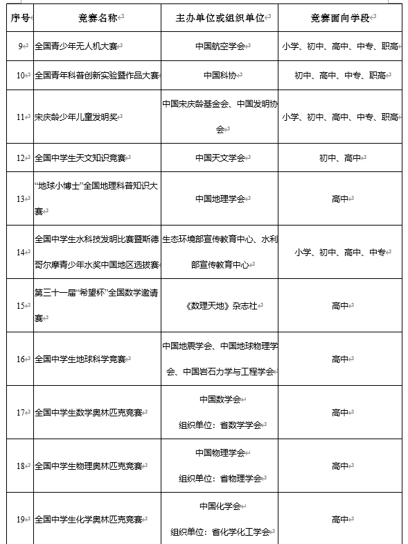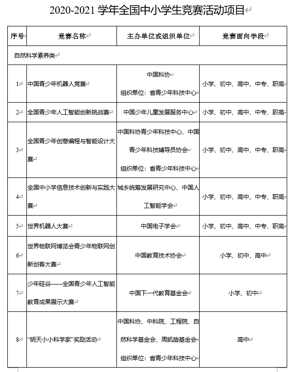 省教育廳官宣2020-2021學(xué)年中小學(xué)生競賽活動項目