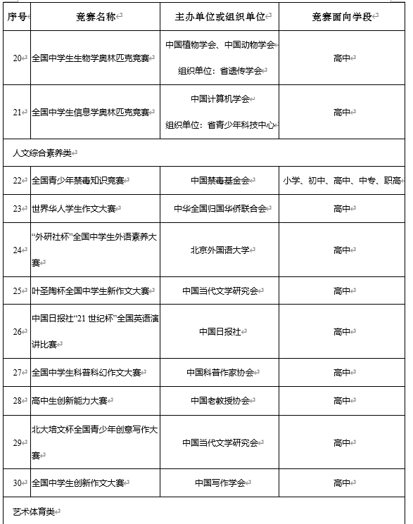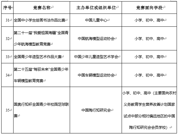 附2020-2021學(xué)年全國中小學(xué)生競賽活動項目