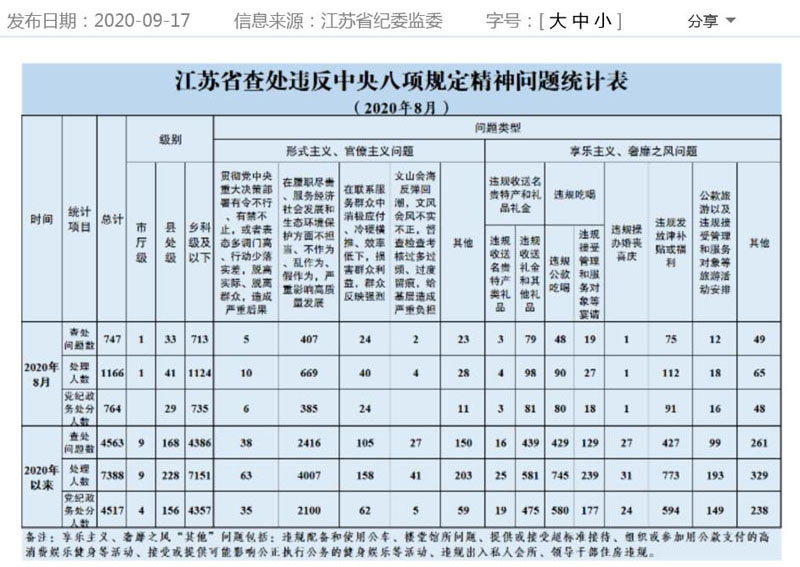 8月江蘇查處違反中央八項(xiàng)規(guī)定精神問(wèn)題7