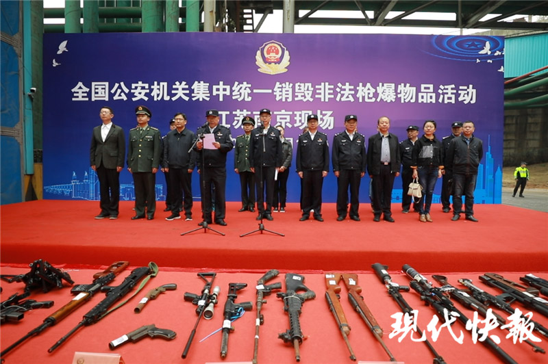 江蘇省公安廳黨委副書記、常務(wù)副廳長(zhǎng)尚建榮,省和南京市打擊整治槍支爆炸物品違法犯罪聯(lián)席會(huì)議部分成員單位和社會(huì)各界代表,在南鋼中心現(xiàn)場(chǎng)參加銷毀活動(dòng)。