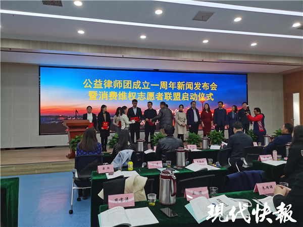 南京市市場監(jiān)督管理局二級巡視員、南京市消費者協(xié)會會長王之熙表示,一年來,公益律師團積極開展與消費者權(quán)益保護相關(guān)的法律及實務(wù)研究,提出立法立規(guī)建議。律師團還利用南京市消協(xié)“掌上消協(xié)”APP,24小時為消費者提供法律咨詢,一周一期,目前已舉行47期。在南京市消費維權(quán)公益律師團正式成立一周年之際,公益律師團又吸納了13名律師,壯大了公益維權(quán)力量。此外,當(dāng)天還舉行了南京市消費維權(quán)志愿者聯(lián)盟的啟動儀式。這是一個以在寧高校大學(xué)生為主體的志愿者組織,首批成員來自14個高校,共有317名。會上,江蘇恒愛法律援助與研究中心還設(shè)立了“南京市消費教育基地”和“消費維權(quán)服務(wù)站”。