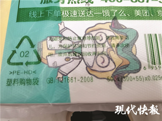 當(dāng)天,記者還通過(guò)在門(mén)店、網(wǎng)絡(luò)平臺(tái)購(gòu)買(mǎi)等方式,取得了南京4家藥店的塑料購(gòu)物袋,所獲塑料袋均明示主要材質(zhì)為“PE-HD”,還有“02”的標(biāo)識(shí)。據(jù)了解,PE-HD是指高密度聚乙烯塑料,02是高密度聚乙烯材質(zhì)代號(hào)。這種塑料根據(jù)用途可以制成薄厚不同的食品袋,如果不被污染可以反復(fù)使用,節(jié)約資源。不過(guò)這也意味著,在記者當(dāng)天的調(diào)查范圍內(nèi),所有的書(shū)店和藥店使用的仍是不可降解塑料袋。
