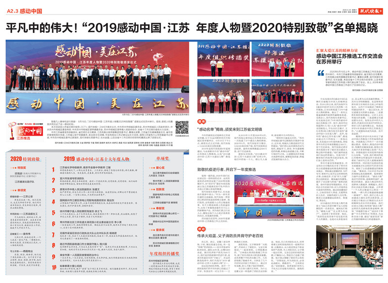 “2020感動中國·江蘇年度人物”推選活動即日起正式啟動。