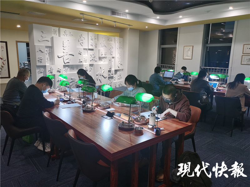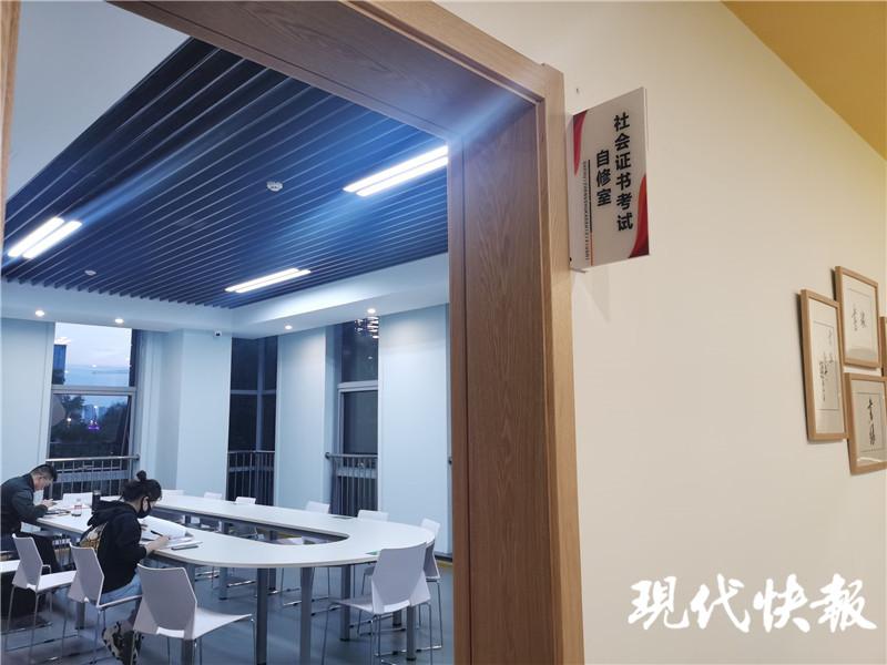 19日晚上7點(diǎn)多,現(xiàn)代快報(bào)記者在建鄴區(qū)圖書館看到,24小時(shí)開放區(qū)域位于圖書館2樓,整個(gè)開放區(qū)域空間很大,環(huán)境干凈整潔,暖黃色的燈光明亮溫馨,間隔設(shè)置小沙發(fā)供讀者自修和閱讀,營(yíng)造了良好的閱讀氛圍。沙龍區(qū)、自修區(qū)、社會(huì)化考試自修室以及近期打造的“星空閱讀區(qū)”,這些區(qū)域的24小時(shí)開放,可向讀者提供近百個(gè)坐席位,最大程度地滿足讀者在夜間的閱讀需求。