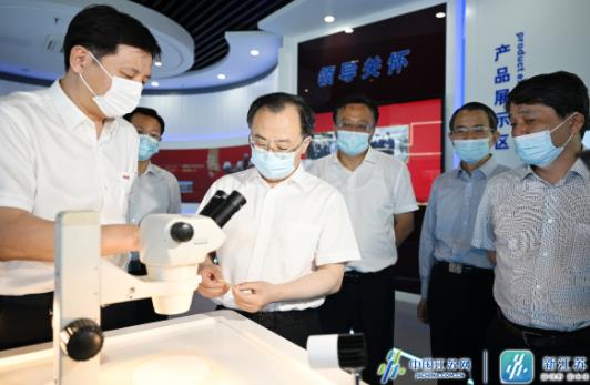 中國電科五十五所長期深耕電子器件研究、開發(fā)及應(yīng)用,正在加快建設(shè)具有自主創(chuàng)新能力、國際先進(jìn)水平的核心電子器件研發(fā)生產(chǎn)基地。吳政隆來到研究所展廳,詳細(xì)了解發(fā)展歷程、產(chǎn)業(yè)布局以及射頻集成電路應(yīng)用等情況后說,電子信息產(chǎn)業(yè)是國際競爭制高點(diǎn),要堅(jiān)持以國家戰(zhàn)略需求為導(dǎo)向,加快推進(jìn)科技創(chuàng)新,掌握更多具有自主知識(shí)產(chǎn)權(quán)的核心技術(shù),推動(dòng)更多科技成果在江蘇轉(zhuǎn)化和產(chǎn)業(yè)化,為產(chǎn)業(yè)高質(zhì)量發(fā)展注入強(qiáng)勁動(dòng)力。隨后,吳政隆實(shí)地察看半導(dǎo)體芯片生產(chǎn)線,他說,關(guān)鍵核心技術(shù)要不來、買不來、討不來。希望企業(yè)發(fā)揮好龍頭帶動(dòng)引領(lǐng)作用,充分利用江蘇科教資源豐富、產(chǎn)業(yè)基礎(chǔ)堅(jiān)實(shí)的優(yōu)勢(shì),進(jìn)一步整合集聚創(chuàng)新資源,建設(shè)國際一流的創(chuàng)新平臺(tái),吸附更多“專精特新”企業(yè)和“單打冠軍”,合力打贏關(guān)鍵核心技術(shù)攻堅(jiān)戰(zhàn),鍛長板、補(bǔ)短板,增強(qiáng)產(chǎn)業(yè)鏈供應(yīng)鏈自主可控能力,提升產(chǎn)業(yè)鏈現(xiàn)代化水平,爭當(dāng)原創(chuàng)技術(shù)的“策源地”、發(fā)展新賽道的“開辟者”“領(lǐng)跑者”,更好推動(dòng)全省打造具有全球競爭力的集成電路產(chǎn)業(yè)集群。