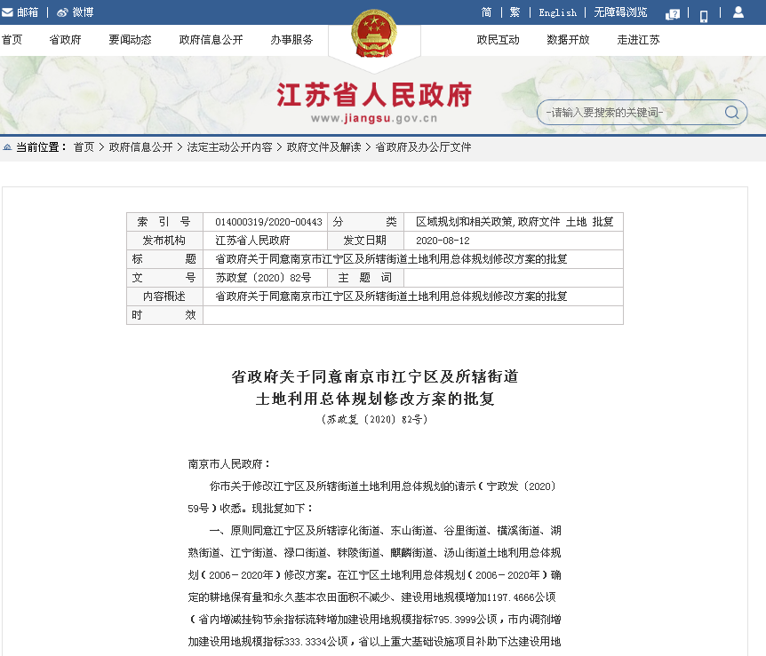 江寧區(qū)土地利用規(guī)劃調(diào)整獲批