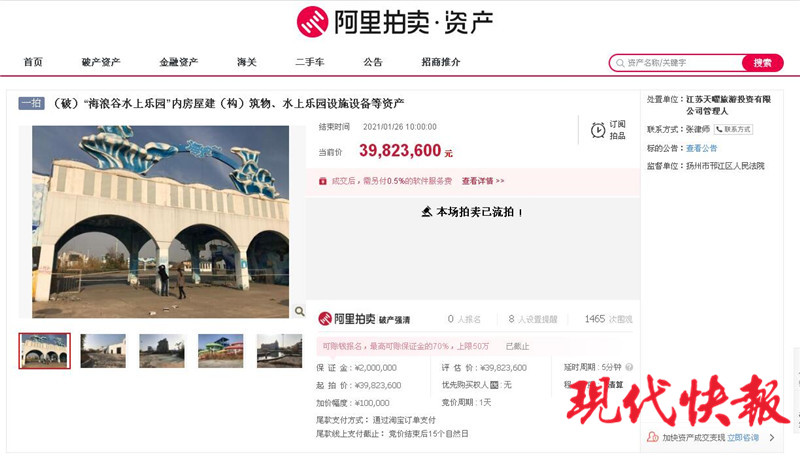 “揚(yáng)州海浪谷”3982萬被破產(chǎn)拍賣 曾是蘇中最大水上樂園