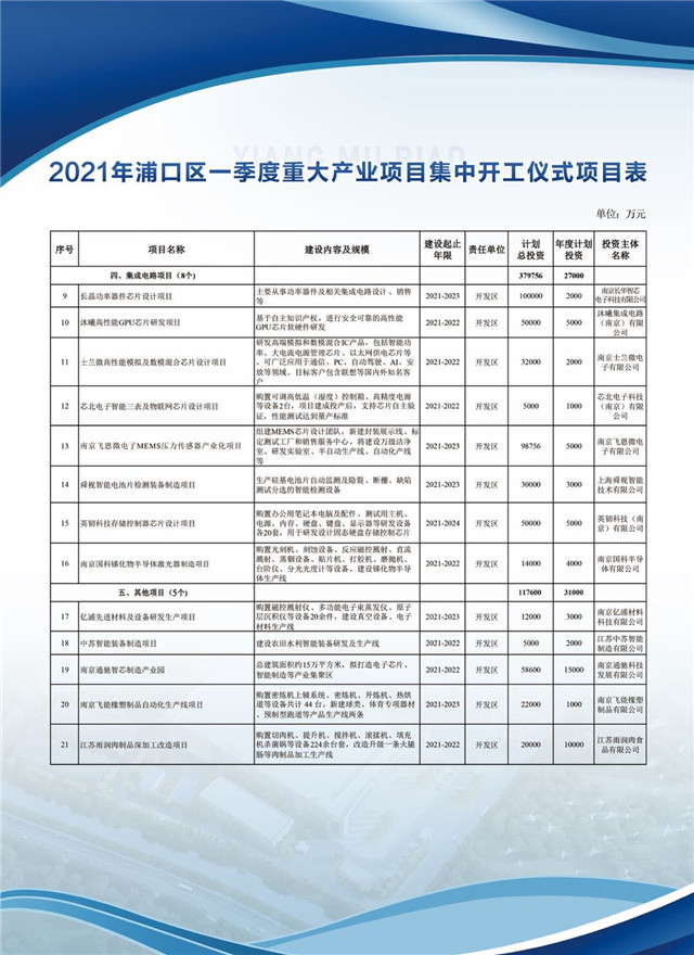 開工儀式上,浦口區(qū)委書記祁豫瑋表示,今年是全市“產(chǎn)業(yè)質(zhì)效提升年”,浦口將嚴(yán)格按照市委市政府部署,以項(xiàng)目建設(shè)的高質(zhì)量推動(dòng)產(chǎn)業(yè)質(zhì)效的大提升,具體做到“三個(gè)到位”:一是對(duì)接到位。建立健全領(lǐng)導(dǎo)干部掛鉤重大項(xiàng)目機(jī)制,定期調(diào)度、定期研究、定期觀摩,全力幫助企業(yè)解決好施工建設(shè)、項(xiàng)目審批、工程用工等實(shí)際困難。二是服務(wù)到位。認(rèn)真總結(jié)臺(tái)積電從動(dòng)工到進(jìn)機(jī)14個(gè)月、華天科技從動(dòng)工到投產(chǎn)17個(gè)月的經(jīng)驗(yàn)做法,執(zhí)行落實(shí)優(yōu)化營(yíng)商環(huán)境市新100條、區(qū)18條,為項(xiàng)目推進(jìn)提供更加優(yōu)質(zhì)的服務(wù)。三是保障到位。切實(shí)做好全區(qū)面上疫情防控、安全穩(wěn)定等工作,為項(xiàng)目建設(shè)創(chuàng)造有利環(huán)境。