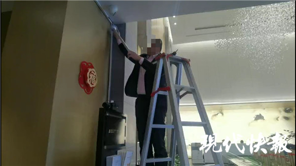 △ 在市場(chǎng)監(jiān)管部門(mén)要求下,工作人員拆除人臉識(shí)別設(shè)備