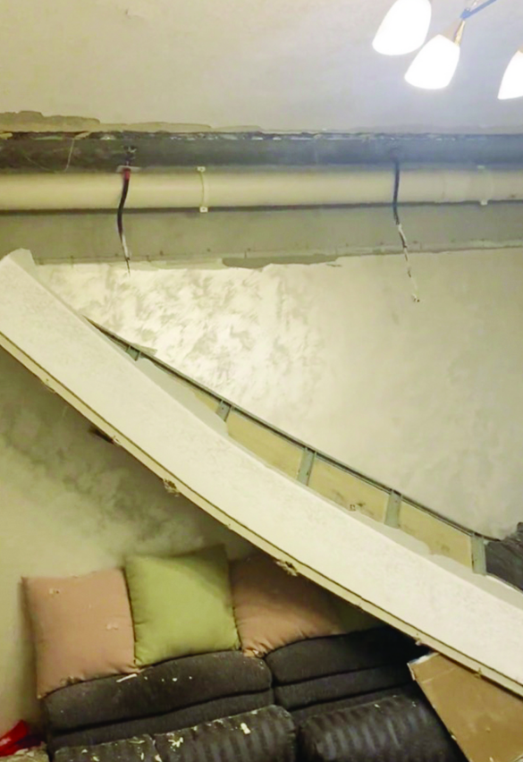 據(jù)社交平臺視頻顯示,該網(wǎng)友家客廳內(nèi)散落著成塊碎裂的吊頂板材,屋頂上一側(cè)邊還粘連著快要脫落的一塊板材,另一側(cè)邊則脫落得比較徹底,管道、線路以及部分灰色的墻體都已經(jīng)裸露出來。板材塌落在電視柜邊上、陽臺移門前和沙發(fā)上,該網(wǎng)友還表示,幸虧當(dāng)時老人和小孩都不在家,否則后果不堪設(shè)想。