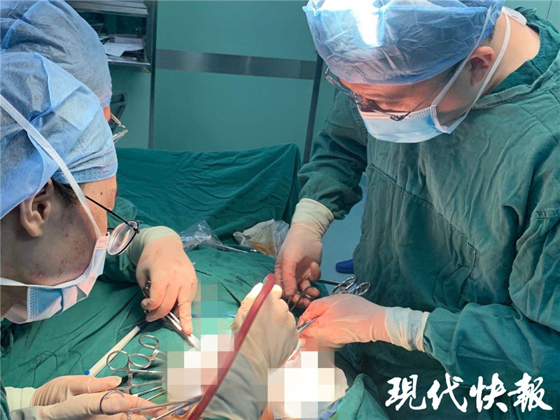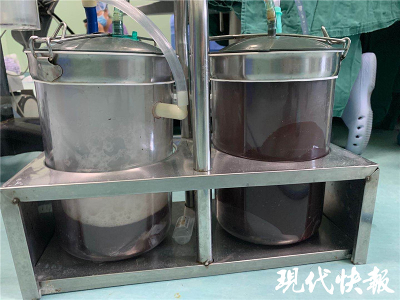 為了順利完成這臺(tái)“重量級(jí)”手術(shù),保障吳女士手術(shù)的安全、舒適,醫(yī)療團(tuán)隊(duì)召開了術(shù)前協(xié)調(diào)會(huì)確定手術(shù)方案。“這個(gè)病人脂肪層達(dá)到了8厘米的厚度,如果做開腹手術(shù),要縫合很多層,傷口很難愈合。病人痛苦比較大,做腹腔鏡也是有一定難度。”楊洪波說,他們選擇從肚臍入手,這里皮膚厚度相對(duì)較薄,做了一個(gè)小切口,醫(yī)生共吸出了近5000毫升的囊液,隨后將囊皮完整剝離,手術(shù)創(chuàng)傷比較小,做的也比較快。