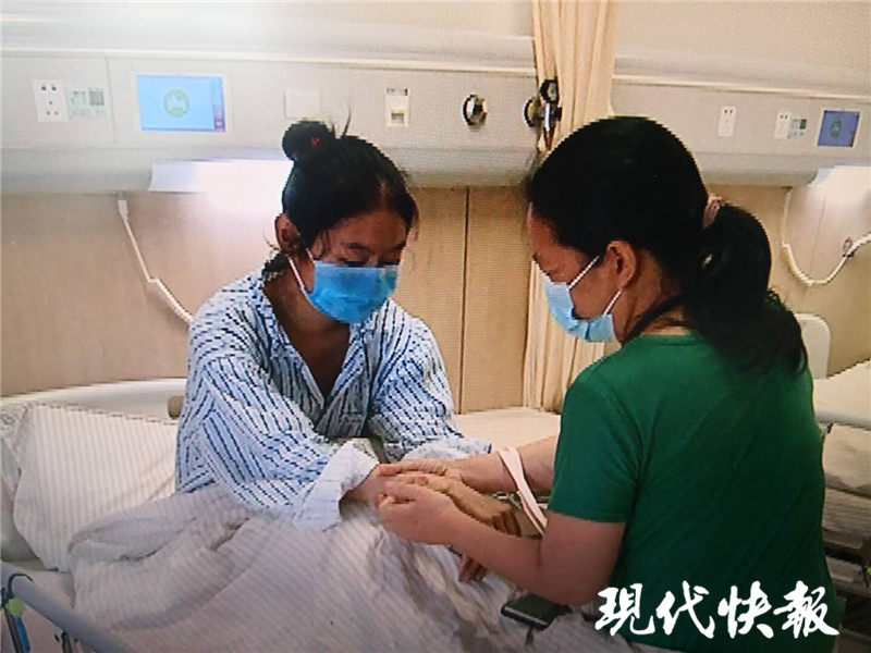 △顏臘梅和女兒在江蘇省人民醫(yī)院