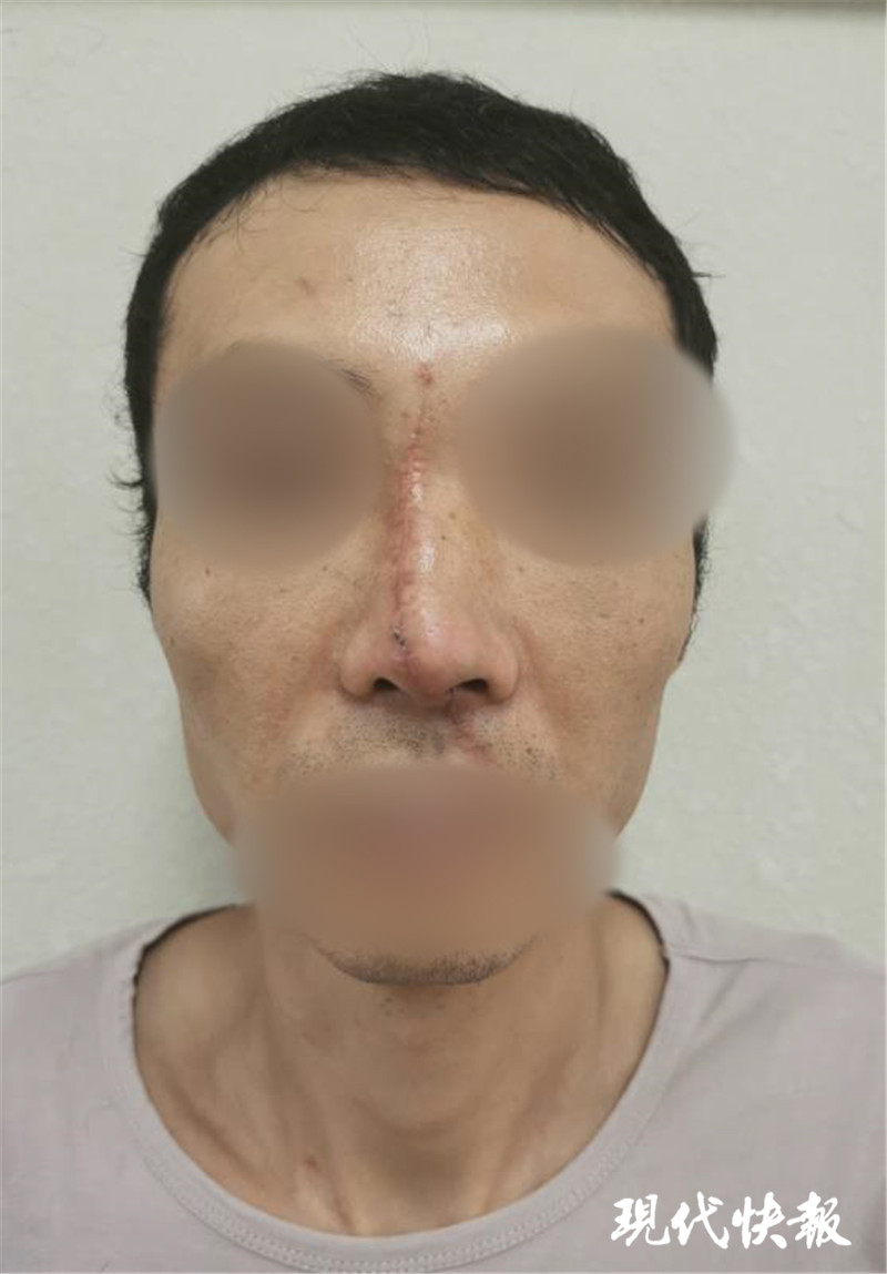 7月下旬的一天,剛過(guò)30歲的張強(qiáng)在操作電鋸干活時(shí),不料電鋸反彈,其面部被電鋸豎著切開(kāi),鼻子被切成兩半,傷口沿額頭、鼻子一直延伸到唇部,傷情非常嚴(yán)重。