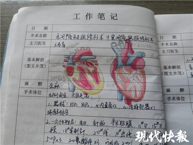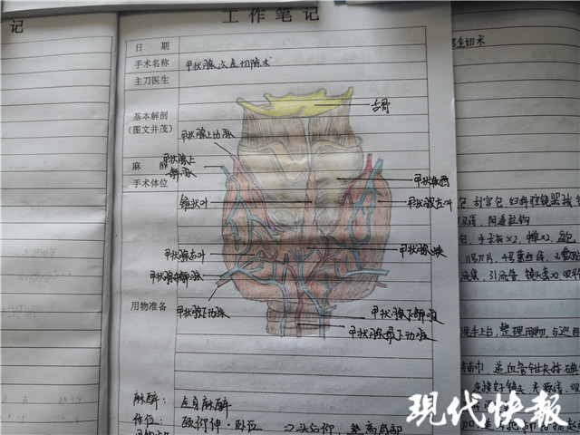 袁敏說(shuō),按科室要求,每一名護(hù)士都要嚴(yán)格書寫手術(shù)筆記,以增強(qiáng)學(xué)習(xí)效果。只是每個(gè)人的美術(shù)功底不一樣,繪制解剖圖的水平也可能有所不同,每一位護(hù)士記錄的側(cè)重點(diǎn)也有不同。