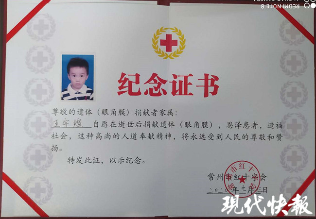 2020年7月12日,王宇煊永遠(yuǎn)地離開了這個世界,離開了悉心照顧他十多年的爺爺奶奶。這一天,他捐出了自己的眼角膜,在常州市紅十字會的幫助下,一名飽受失明之苦的陌生人接受了這份愛的饋贈,重見了光明。