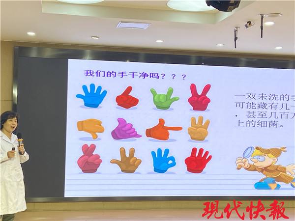 在活動現(xiàn)場,省人民醫(yī)院感染管理處張翔醫(yī)生向?qū)W生們傳授“七步洗手法”,并邀請學(xué)生上臺進行仔細(xì)指導(dǎo)。省疾控中心消毒與病媒生物防制所副所長談智帶來“科學(xué)洗手 遠(yuǎn)離傳染病”的健康小講座,教育同學(xué)們通過正確洗手,有效避免感染疾病。為了讓同學(xué)們牢記科學(xué)洗手步驟,現(xiàn)場表演了省人民醫(yī)院專家編制的“快閃洗手舞”?;顒拥玫綄W(xué)生們的積極響應(yīng)和參與,現(xiàn)場氛圍熱烈。