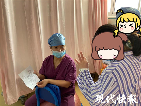 “通過了解,這個(gè)孕婦不僅聾啞,同時(shí)也沒接受過什么文化教育,如果以文字形式進(jìn)行溝通,她可能不能很好的理解,所以我們就想著以什么樣的形式更直觀的讓她理解我們想要表達(dá)的意思,我們就想到了以助產(chǎn)士的親身示教,還有以繪畫的形式來表達(dá)。”淮安市婦幼保健院產(chǎn)房助產(chǎn)士秦立敏說。