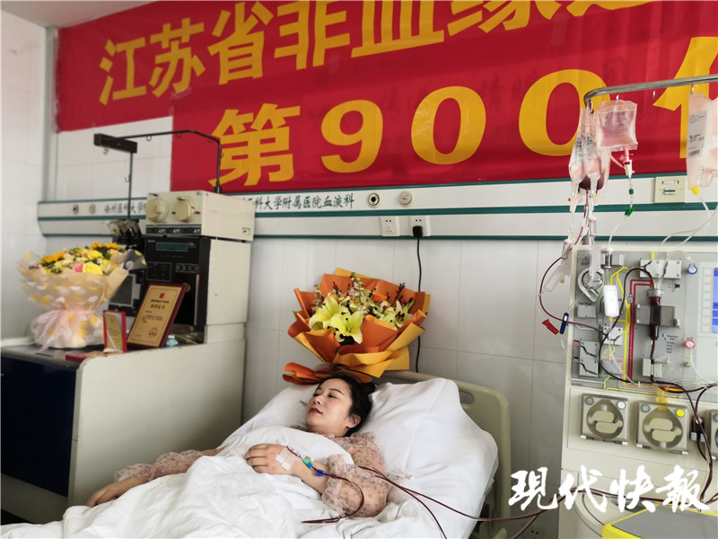 當(dāng)天上午,在徐醫(yī)附院21樓單核細(xì)胞采集室內(nèi),鞏景景躺在潔白的病床上開始造血干細(xì)胞采集。鞏景景今年29歲,是徐州豐縣人民醫(yī)院的護(hù)士,去年5月在豐縣血站獻(xiàn)血時(shí)加入了中華骨髓庫(kù),沒(méi)想到短短半年時(shí)間,12月份就接到了豐縣紅十字會(huì)的電話,稱其與一名血液病患者初配成功。