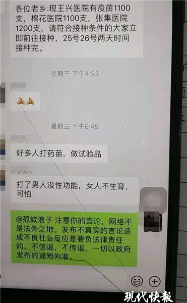 (通訊員 文松 記者 李子璇)近日,淮安市淮陰區(qū)社區(qū)工作人員在微信群里宣傳引導(dǎo)當(dāng)?shù)鼐用窠臃N新冠疫苗,并提供3家醫(yī)院供市民前往接種。群內(nèi)一男子發(fā)布有關(guān)疫苗的不實(shí)言論稱,男人接種疫苗后喪失性功能,女人接種后不生育。該不實(shí)言論迅速在網(wǎng)絡(luò)上瘋傳,造成不良影響。