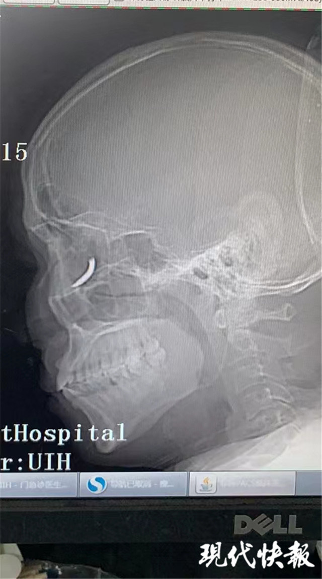 “當(dāng)時在敲鐵釘,感覺什么東西進(jìn)眼睛里了,但沒影響視力,還以為是水泥灰之類的。”三天前,王師傅眼中進(jìn)入異物,感覺頭暈不適后,去當(dāng)?shù)蒯t(yī)院就診,拍了X光片后,竟然發(fā)現(xiàn)自己眼眶內(nèi)有一個鐵釘樣的異物。