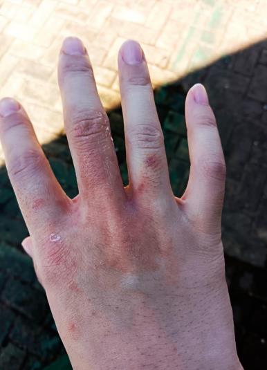 這次祿口疫情來得突然,外派支援祿口的任務(wù)也很緊急,貢楚楚在得知外派任務(wù)后第一時(shí)間報(bào)了名。三十幾度的夏天,天氣極度炎熱,穿上密不透風(fēng)的防護(hù)服,穿梭在樓道之間,一家一戶敲門,認(rèn)真登記每一個(gè)人的名字,身份證號(hào),一遍遍核對,生怕有一絲一毫的錯(cuò)誤……這是貢楚楚每天的日常。每次脫下防護(hù)服時(shí),她都全身濕透,由于對滑石粉過敏,脫下手套時(shí)手上奇癢無比、全是紅疹。即使涂了藥,好了一些后她又重新戴上手套,再次武裝整齊出發(fā)了。頻繁的手衛(wèi)生消毒,讓她的手被酒精燒灼得通紅,手上也蛻了一層又一層的皮,但身上的使命感卻讓她從來沒有抱怨過一句。