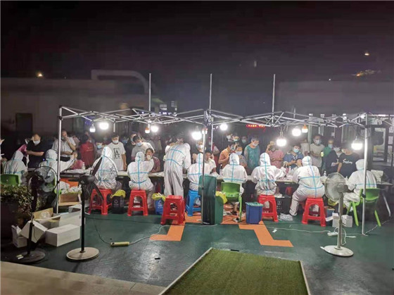 疫情就是命令,防控就是責(zé)任。7月20日面對(duì)來(lái)勢(shì)洶洶的疫情,江寧中醫(yī)院立即組建應(yīng)急核酸采樣隊(duì)支援祿口街道。已經(jīng)休假在家的黃初梅得知后,立即放棄年休假,主動(dòng)請(qǐng)纓,成為了醫(yī)院第一批應(yīng)急核酸采樣隊(duì)的一員。當(dāng)晚采樣隊(duì)到達(dá)祿口街道時(shí)已是深夜十一點(diǎn),但所有人都知道這場(chǎng)“戰(zhàn)爭(zhēng)”才剛剛開始,今夜注定無(wú)眠。黃初梅帶頭行動(dòng),不停囑咐群眾戴好口罩,保持1米距離,有序檢測(cè)。她仔細(xì)核對(duì)、規(guī)范采樣、裝管……就這樣忙忙碌碌地堅(jiān)持了30多個(gè)小時(shí),等到第二批隊(duì)友接替時(shí),她才覺察到右手已酸疼得抬不起來(lái),疲憊得連話都沒勁說了……