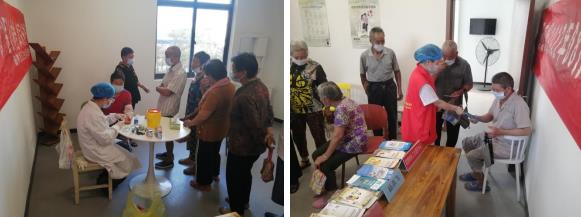 本次活動共有55名居民參加,現(xiàn)場醫(yī)護人員仔細地為每一位居民量血壓、測血糖,做好口腔、耳鼻喉等多方位檢查。針對檢查者的情況,醫(yī)護人員為他們一一進行解說,并叮囑大家要改變不良生活方式,多參加鍛煉,若發(fā)現(xiàn)頭暈、頭痛等問題要及早到醫(yī)院進行檢查治療。此外,醫(yī)務(wù)人員還免費發(fā)放一次性外科口罩,發(fā)放了12種健康宣傳冊(包含中醫(yī)宣傳冊)共計358冊,發(fā)放小禮品55個。