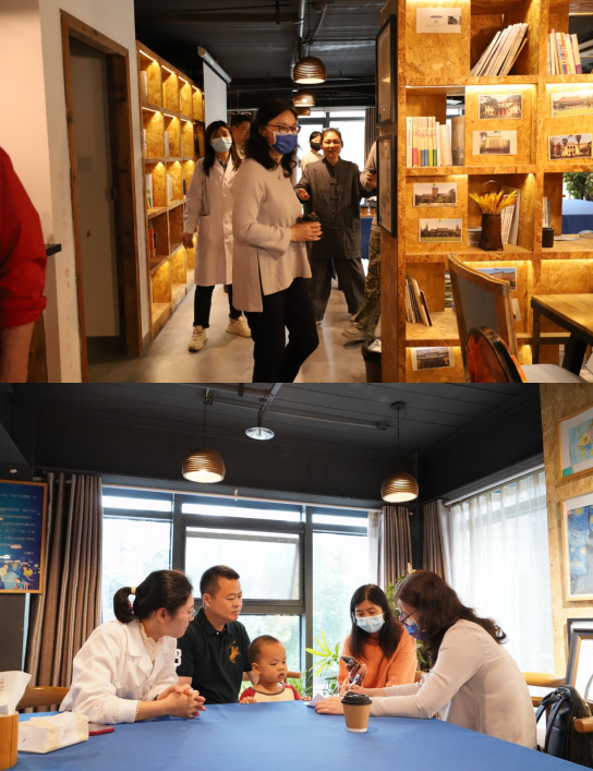 授牌儀式結(jié)束后,柯曉燕教授與領(lǐng)導(dǎo)、專家一起來到醫(yī)院二樓的“星星咖啡”吧參觀孩子們的作品。柯曉燕教授現(xiàn)場(chǎng)對(duì)“星星的孩子”進(jìn)行義診,通過與孩子友好的溝通交流,來打開孩子的心扉。隨后,柯曉燕教授和團(tuán)隊(duì)還對(duì)與會(huì)人員進(jìn)行了相關(guān)業(yè)務(wù)、兒童早期發(fā)展與心理衛(wèi)生孵化平臺(tái)建設(shè)及管理和CHAT-23篩查等方面的培訓(xùn)。(吳思敏)