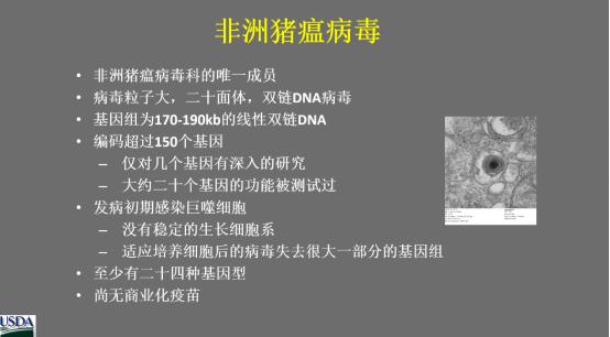 報告首先講解了非洲豬瘟病毒的特征、非洲豬瘟的癥狀以及其傳播途徑。隨后介紹了非洲豬瘟疫苗缺口以及如何合理設(shè)計針對當(dāng)前流行非洲豬瘟毒株的減毒疫苗的方法。