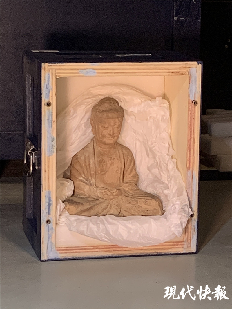 8月24日下午,常州博物館一樓臨展廳里,來(lái)自麥積山藝術(shù)研究院的8人布展團(tuán)隊(duì)和常州博物館工作人員,正在緊張布展中。布展人員現(xiàn)場(chǎng)開(kāi)箱兩件國(guó)家一級(jí)文物,分別是西魏的石雕坐佛和隋代的泥塑坐佛,兩尊坐佛造像精美,細(xì)節(jié)刻畫(huà)成熟。
