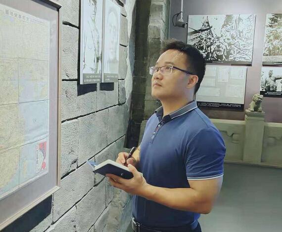 十年來,他先后在辦公室、賓館經理位置上歷練過,2014年他又回到社教部任主任。在主任的位置上,他通過思考認為,現在的紀念館社會教育功能還存在不足:一是教育項目單一,同質化問題嚴重;二是講解內容針對性不足,采用的講解方式依然是單向的“填鴨式”和“灌輸式”;三是特色教育項目匱乏。為此,他首先從提高講解員隊伍的綜合素質入手,針對不同的參觀對象,編寫了不同的專用講解詞。他組織挖掘了革命紅色故事,因時制宜地研發(fā)紅色教育培訓內容,像紅色家書、紅歌教學、紅色故事宣講、紅色詩詞賞析等形式多樣,使紅色文化培訓課程更加豐富多彩。紀念館新增了磨盤山抗日遺址后,他立即組織社教部學習新遺址的展覽內容,并且在最短時間內順利開講。