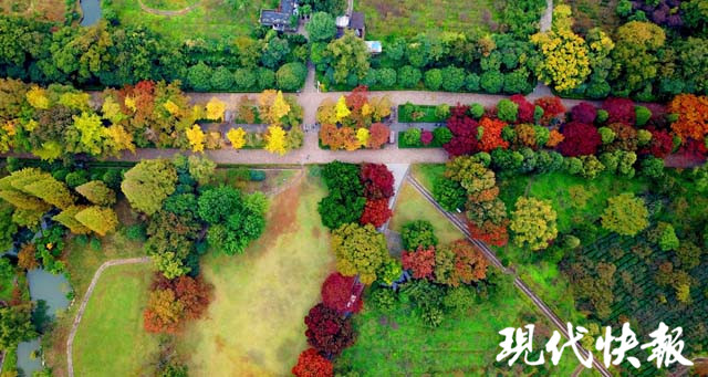 (記者 張然/文 趙杰/攝)一入秋,南京就美成了金陵。10月21日,經(jīng)過(guò)秋雨的洗禮,位于明孝陵景區(qū)的石象路色彩更加濃艷,紅、黃、橙、綠數(shù)色相間,美如畫卷。秋雨打過(guò)落葉,飄落在石像之上,那是屬于金陵的古都遺韻。