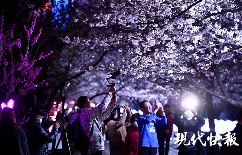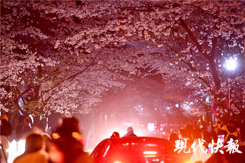 現(xiàn)代快報(bào)訊(記者 盧河燕/文 趙杰/攝)白天賞櫻人太多,你知道夜晚的櫻花有多美?近日,南京雞鳴寺路的櫻花頻頻上熱搜。白天賞花,游人如織。其實(shí),夜幕降臨后,櫻花同樣美麗。城市燈光璀璨,櫻花在夜晚幻化著不同的色彩,如云似霞、滿樹爛漫,漫步其中,宛若置身于仙境一般。粉的、白的、淡紅的……城市的燈光讓這條路變得如夢(mèng)如幻。映襯著雞鳴寺的黃墻灰瓦,這里的夜櫻不僅美輪美奐,而且頗具古意,和白天的櫻花有著完全不同的景觀。不少市民戴著口罩,圍著一簇簇夜櫻尋找拍照的角度。大家紛紛感嘆,“雞鳴寺賞櫻花不僅白天美不勝收,夜賞櫻花也正在成為一種時(shí)尚?!?/span>