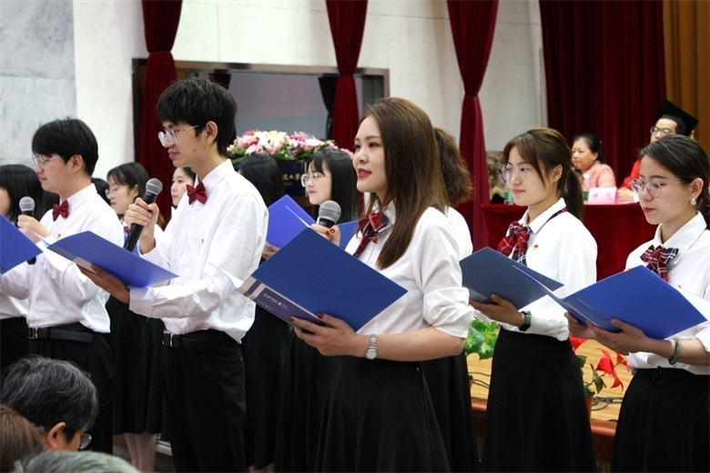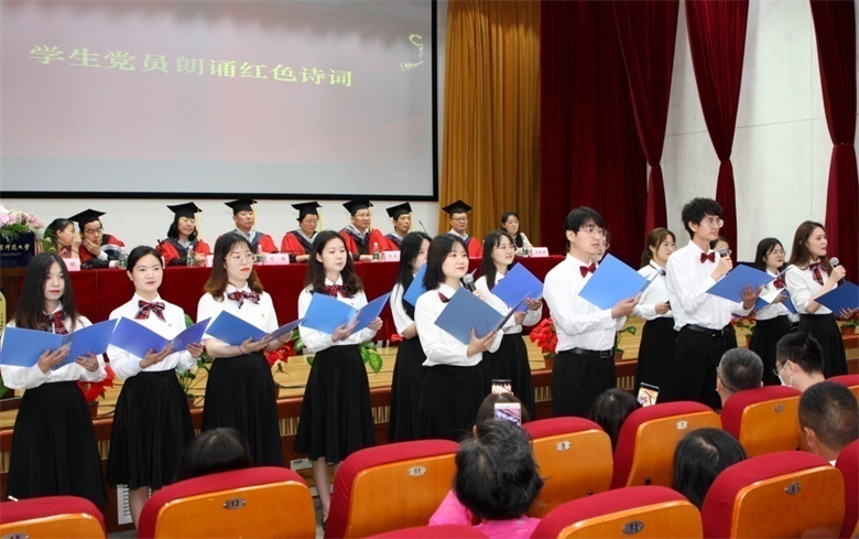 大學(xué)生黨員代表團(tuán)隊(duì)鏗鏘有力地朗誦紅色經(jīng)典詩(shī)詞