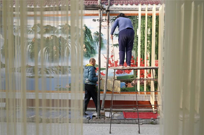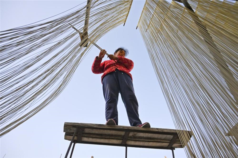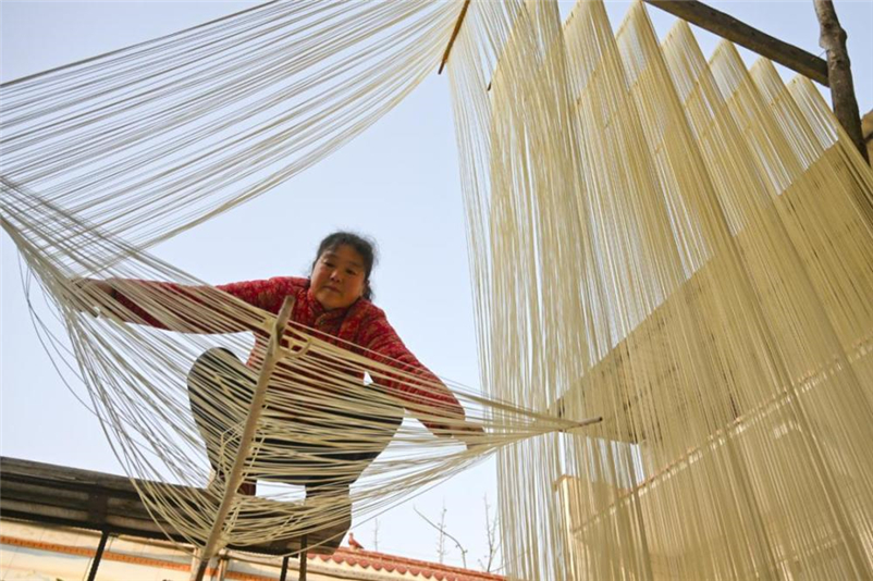 圖為陳世民的妻子寇彩蓮在晾曬掛面 圖源:大河鄉(xiāng)土企鵝號(hào)