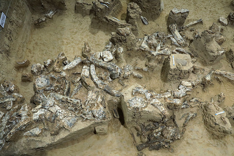 湖北十堰學(xué)堂梁子遺址發(fā)掘現(xiàn)場被命名為“鄖縣人3號頭骨”古人類頭骨化石出土情況(國家文物局供圖)。