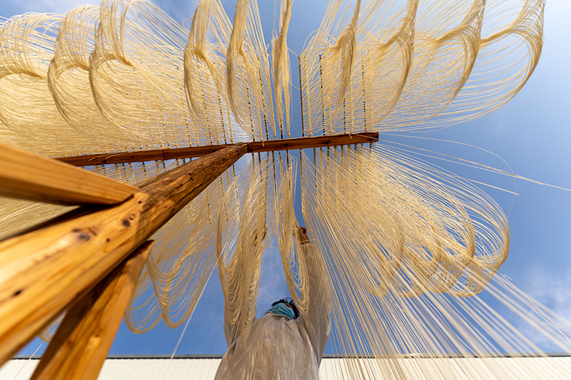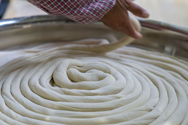 12月12日,在竹塘社區(qū)掛面合作社的掛面車間,工人將搓好的面放入醒面盆。安徽省合肥市肥東縣橋頭集鎮(zhèn)竹塘社區(qū)手工制作掛面歷史悠久,是遠(yuǎn)近聞名的掛面專業(yè)村,手工掛面制作技藝是當(dāng)?shù)胤沁z項目。近年來,當(dāng)?shù)夭扇 昂献魃?農(nóng)戶”模式,統(tǒng)一掛面制作標(biāo)準(zhǔn),除掛面車間集中生產(chǎn)外,還指導(dǎo)分散的農(nóng)戶生產(chǎn),統(tǒng)一收購、銷售。通過大力發(fā)展特色手工掛面產(chǎn)業(yè),增加農(nóng)戶收入,助力鄉(xiāng)村振興。新華社發(fā)(阮雪楓 攝)