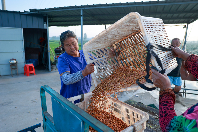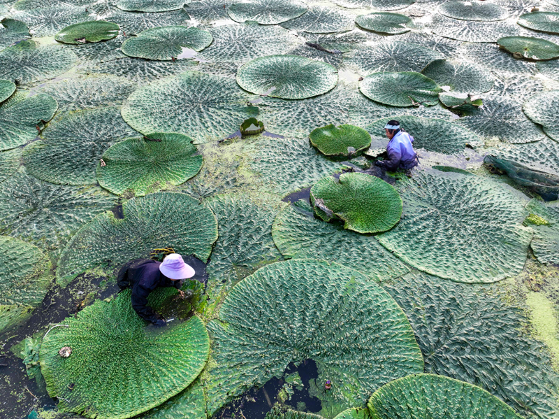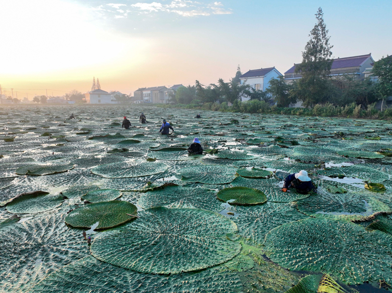 眼下,江蘇省泰州市姜堰區(qū)顧高鎮(zhèn)種植的芡實(shí)進(jìn)入成熟期,種植戶組織人力采收,芡種植基地呈現(xiàn)一派繁忙的豐收景象。新華社發(fā)(顧繼紅 攝)