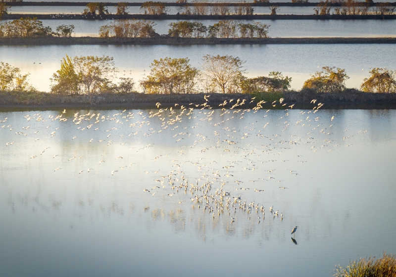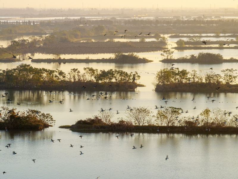 近日,大批候鳥飛抵江蘇省興化里下河國(guó)家濕地公園,它們成群結(jié)隊(duì)在淺灘覓食、休憩,成為冬日里一道美麗的風(fēng)景線。