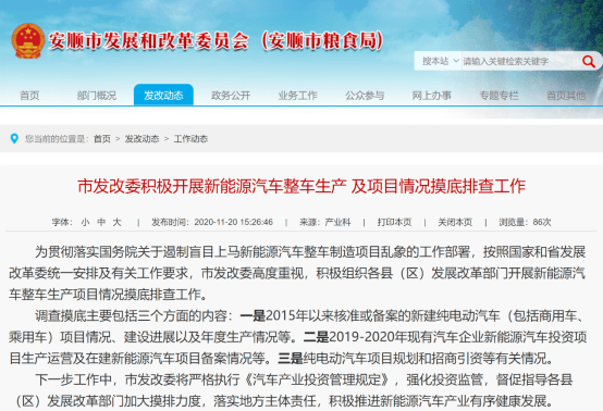 安順發(fā)改委在20日表示,為貫徹落實(shí)國(guó)務(wù)院關(guān)于遏制盲目上馬新能源汽車整車制造項(xiàng)目亂象的工作部署,按照國(guó)家和省發(fā)展改革委統(tǒng)一安排及有關(guān)工作要求,市發(fā)改委高度重視,積極組織各縣(區(qū))發(fā)展改革部門開展新能源汽車整車生產(chǎn)項(xiàng)目情況摸底排查工作。