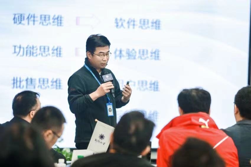 為給學(xué)員授課,華人運(yùn)通高合汽車創(chuàng)始人董事長兼CEO丁磊導(dǎo)師,專程從上海趕回工廠。并沒有工作忙碌的疲憊感,那種充滿活力和自信的氣場,感染著在做的每位學(xué)員。他首先對賈可博士及鈴軒班學(xué)員此次的高合之行表示了熱烈歡迎,并對軒轅之學(xué)的使命表達(dá)了贊許。