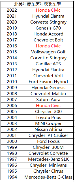 看看歷年獲獎車型名單,相信各位也知道,最終獲獎更多的還是歐美品牌旗下車型,思域三得大獎有多么可貴,可想而知。