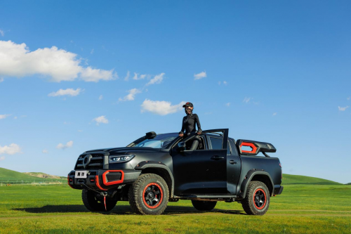 2022款黑彈是長城炮與運(yùn)良攜手為深度越野和泛戶外玩家打造的“荒野利器”。潮流炫酷的外觀,獨(dú)具野性魅力。粗壯的熏黑中網(wǎng),搭配犀利的鷹眼大燈,讓車頭呈現(xiàn)出粗獷兇悍的視覺神態(tài);寬體輪眉的加入,讓升高后的整車比例更加勻稱協(xié)調(diào);全黑車身搭配亮橙點(diǎn)綴,為粗狂霸氣的外觀增加了一絲時(shí)尚感。它生動(dòng)詮釋了什么叫做“低調(diào)不平庸,高調(diào)不張揚(yáng)”,開著黑彈行在藍(lán)天白云下,簡直不要太拉風(fēng)!
