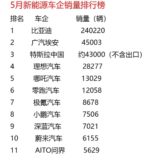 6月初,各大新能源車企都陸陸續(xù)續(xù)公布了5月份的銷量數(shù)據(jù)。第一名依舊是比亞迪遙遙領(lǐng)先,5月交付超過24萬輛。其中,最令人驚喜的是騰勢品牌,僅依靠D9一款車型銷量就突破了1.1萬輛。騰勢銷售事業(yè)部總經(jīng)理趙長江更是表示,騰勢D9接下來會達到月銷1.5萬臺的目標。但是,比亞迪海豹車型月銷沒能破萬,可見海豹受到特斯拉Model 3、深藍SL03的競爭壓力還是蠻大的。同時,比亞迪宋 PLUS DM-i等車型要開始緊張起來了,吉利銀河L7、哈弗梟龍最近的熱度也都是非常高。