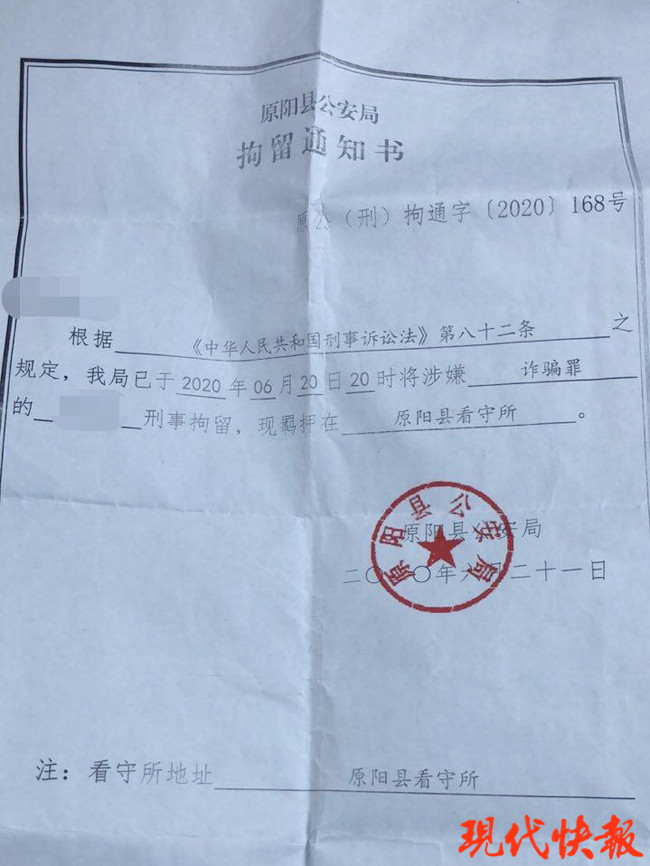 現(xiàn)代快報記者從這9名學生家長那里獲悉,他們都收到了來自河南省原陽縣公安局的刑事拘留通知書,涉嫌的罪名是詐騙罪。這些學生目前被羈押在河南原陽縣、封丘縣等不同的看守所。